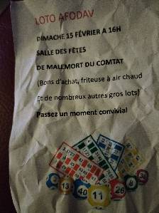 Je vous propose de venir passer une après-midi en venant jouer au loto à la salle des fêtes de Malemort du Comtat